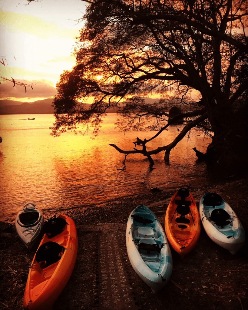 Las excursiones en kayak de mar en el Golfo de Nicoya son una experiencia memorable. Reme en tranquilas bahías con una isla fascinante donde puedes desembarcar en playas vírgenes vírgenes. Se pueden observar arrecifes con una vida marina diversa desde el kayak, o puede saltar al agua y observar más de cerca el esnórquel. La jungla está creciendo hacia el mar y remar en los manglares brinda una experiencia única y la posibilidad de observar la vida silvestre a lo largo de la costa. Hay una variedad de excursiones en kayak de mar para elegir. Todo, desde viajes a medida durante un período más largo hasta recorridos de 1⁄2 día en el área cercana. Las rutas para los recorridos variarán según el clima y la marea. Para mencionar algunos ejemplos, podemos visitar a los monos araña en la Isla Nanotal, hacer snorkel en la Isla San Pedro, explorar los manglares de Paquera o kayak alrededor de la Isla Jesucita e Isla Cedros.